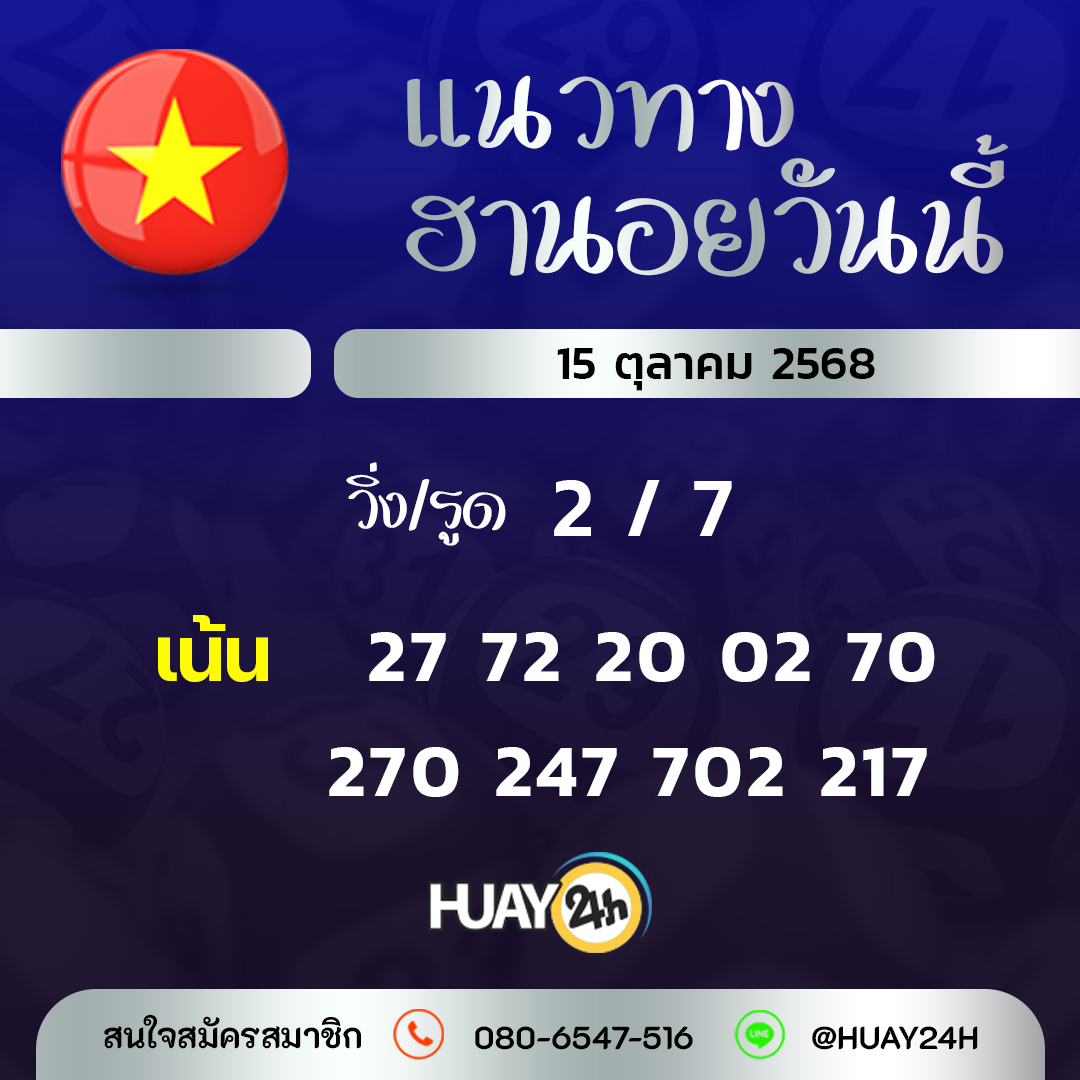 แนวทางหวยฮานอย 15/10/2568 เลขเด็ดหวยฮานอย เว็บหวยไม่มีโกง เเทงหวย หวยออนไลน์ Huay24h