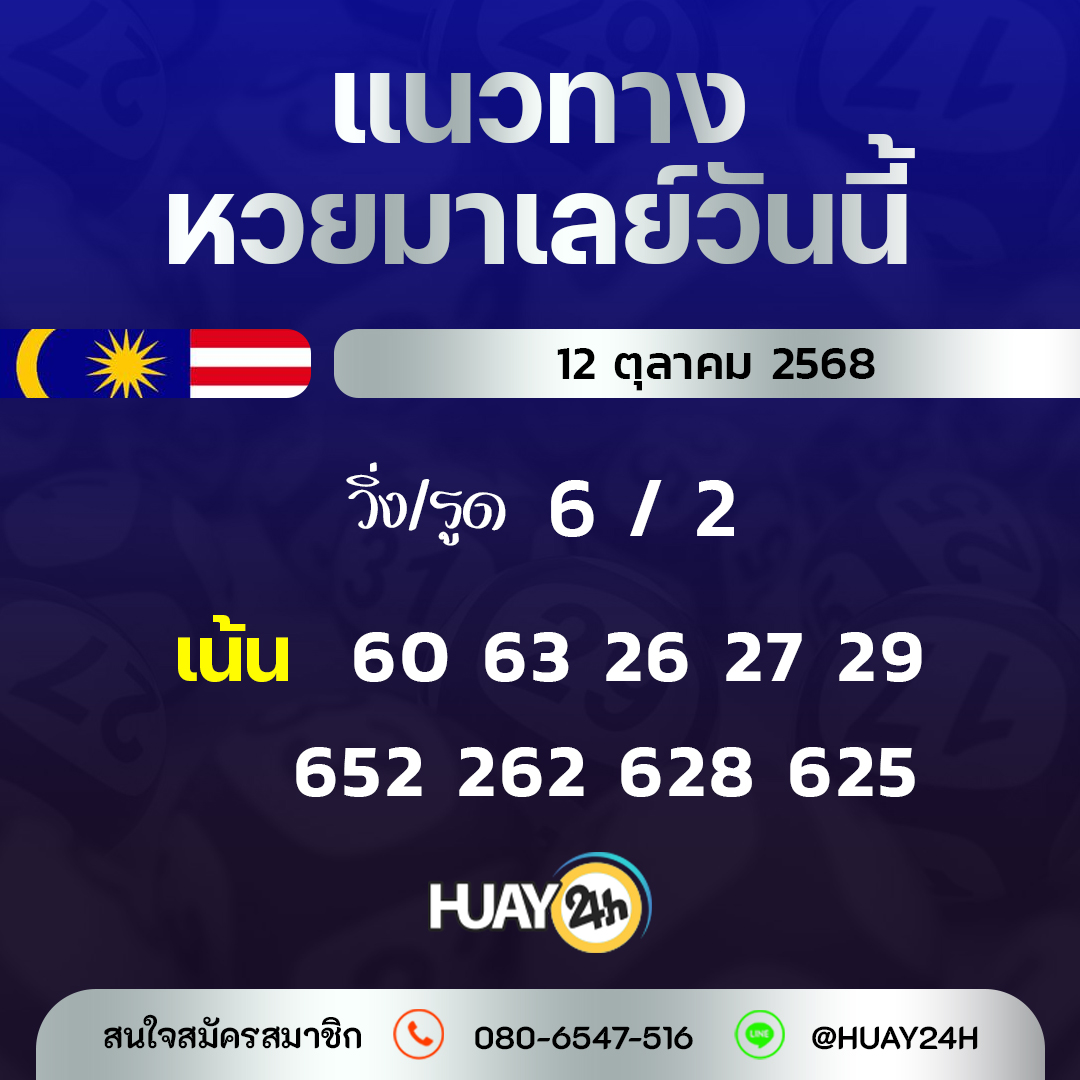 Huay24h แนวทางหวยมาเลย์ วันที่ 12/10/2568 แนวทาหวยมาเลย์ออนไลน์