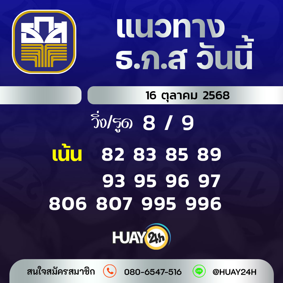 Huay24h แนวทางหวย ธ.ก.ส วันที่ 16 ตุลาคม 2568